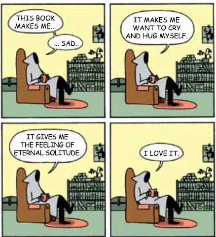 A tradução da tirinha permite-nos colocar a Morte como masoquista.
